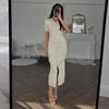 Pletené maxi šaty pro ženy Ležérní nošení Krátký rukáv Bílý límeček Bodycon Tenké šaty Pletené zboží Žebrované dámské šaty High Street