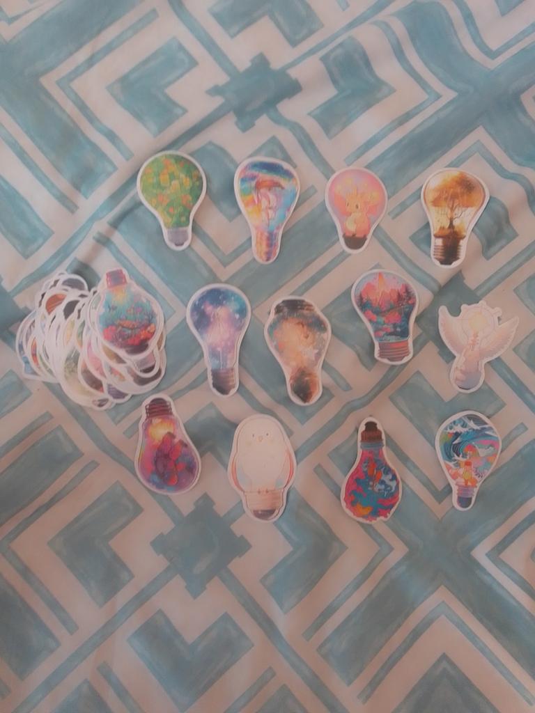 Velmi krásné samolepky s různými předměty. Jako dárek dali samolepku s nápisem. Děkuju!