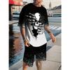 Letní Denní Neformální 2D kreslený potisk lebky Pánské tričko s kulatým výstřihem Pohodlné prodyšné tričko s krátkým rukávem Pánská módní sada