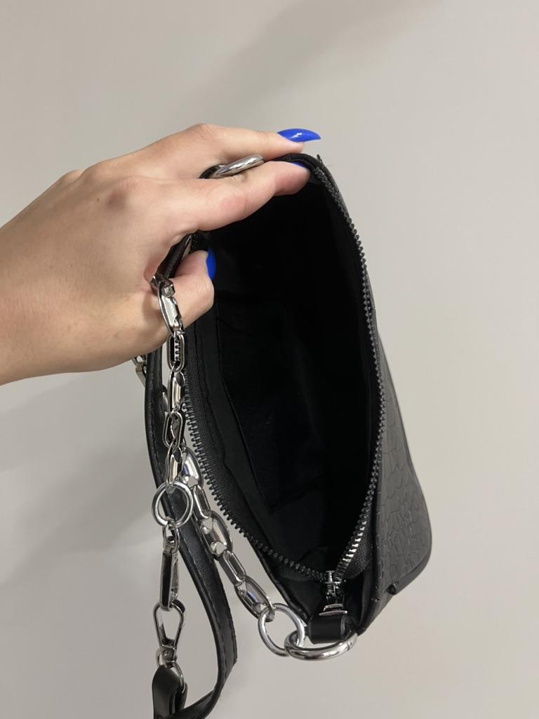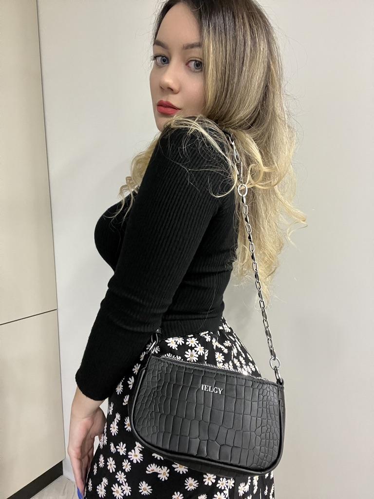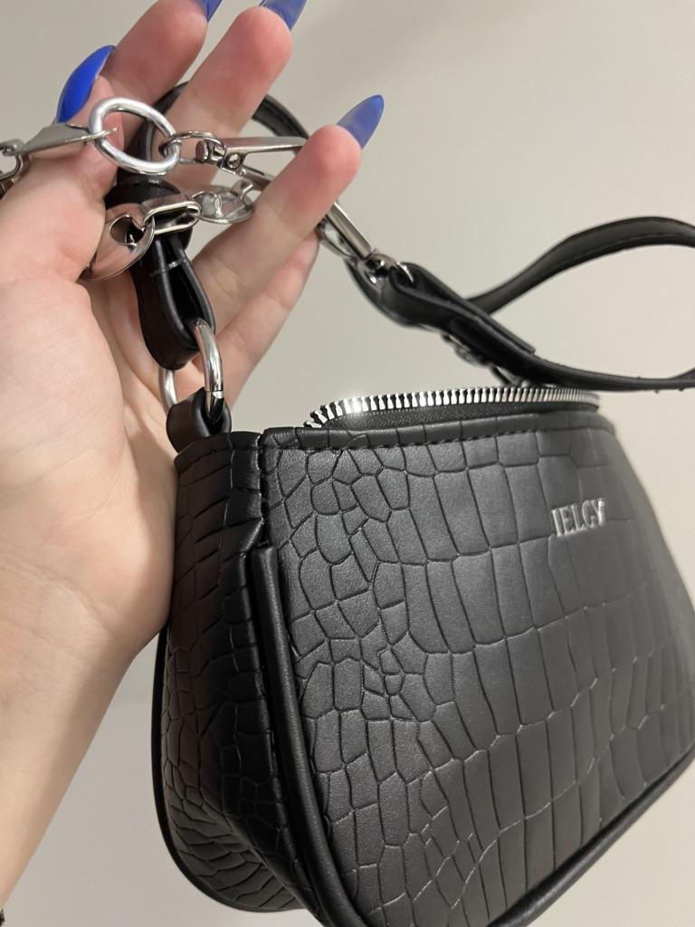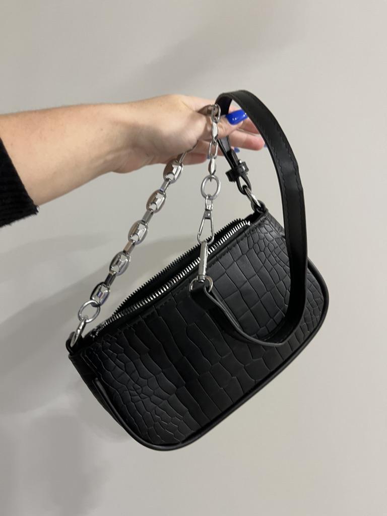 IELGY Elegant Women's Top-handle Bag With Chain Decoration And Crocodile Pattern - Black/White
