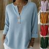 Dámský top s dlouhým rukávem a výstřihem do V, jednobarevný, s knoflíky, volné tričko s dlouhým rukávem s výstřihem do V pro ženy