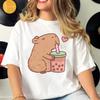 Capybirthday Print Kreslená vícebarevná trička Dámská móda pro volný čas Oblečení 2022 léto volné Pohodlné topy s krátkým rukávem
