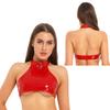 Dámské spodní prádlo Wet Look Lakovaná Leather Halter Vest Crop tílko Rave Clubwear