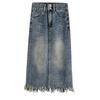 Vintage Džínová sukně Dlouhá Dámská Korejská móda Vysoký pas A-Line Tenký Zoufalý Raw Edge Džínová sukně Streetwear Summer