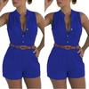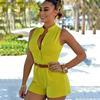 Dámský kombinézon s výstřihem do V, letní, jednobarevný, beze rukávů, přiléhavý, s vysokým pasem, šortky