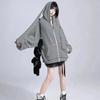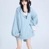 Y2k Podzimní Roztomilé volné proužky Králičí ucho Pletené mikiny Dámské Mikiny na zip s kapucí Cardigan Kabát Kpop Kawaii Oblečení