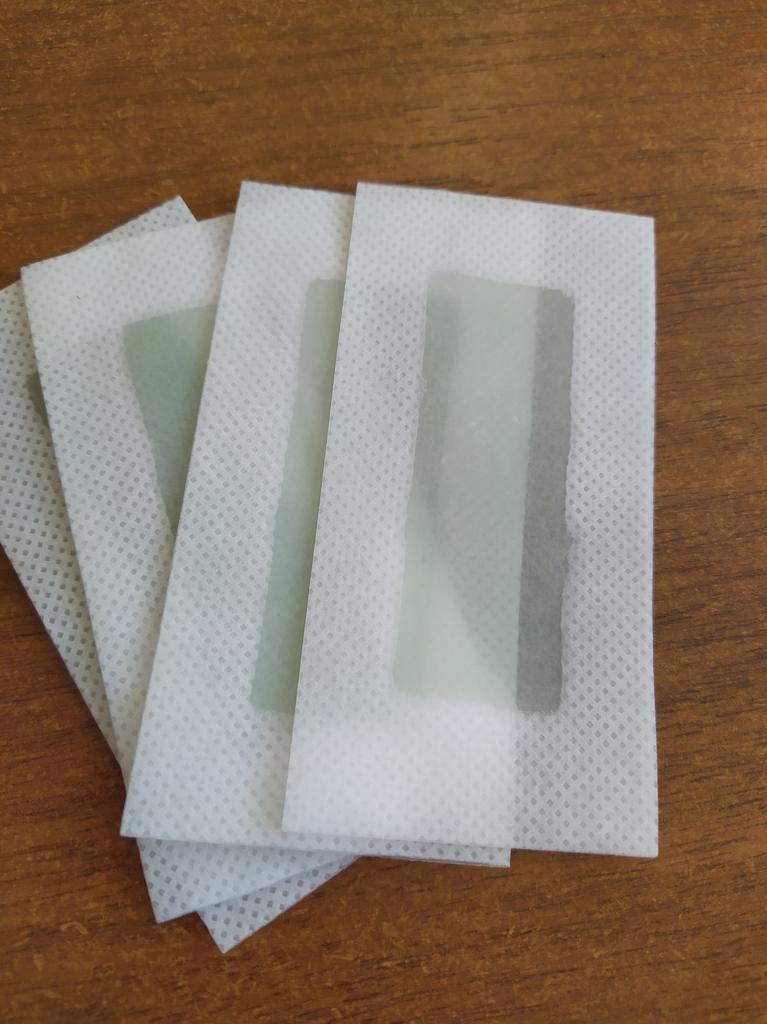 Pruhy jsou slabé. Neodstraňují chloupky (ani jemné chmýří). Je žádoucí, aby lepivá vrstva byla více lepkavá, aby se odstranily vlasy.