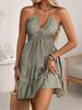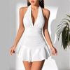 Ruffle Hem V-neck Halter Dress, Sexy Backless Halter Dress For Spring & Summer, Women's Clothing