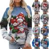 Volná mikina s vánočním potiskem sněhuláka, ležérní mikina s dlouhým rukávem s výstřihem, dámské oblečení