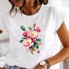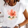 (Asijská velikost) Tričko Květinové Trendy Akvarel Roztomilé Oblečení 90. léta Neformální Krátký rukáv Módní Tričko Ženy Tisk Lady Dámské Grafické tričko