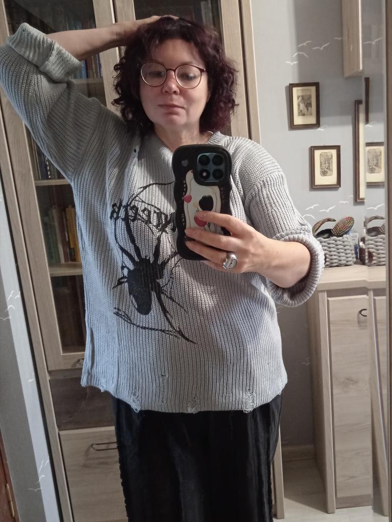 Spider Print Harajuku Tlustý svetr Ženy Gotický Vintage Roztrhaný Grunge Y2k Jumper Streetwear Korejský oversize hiphop svetr