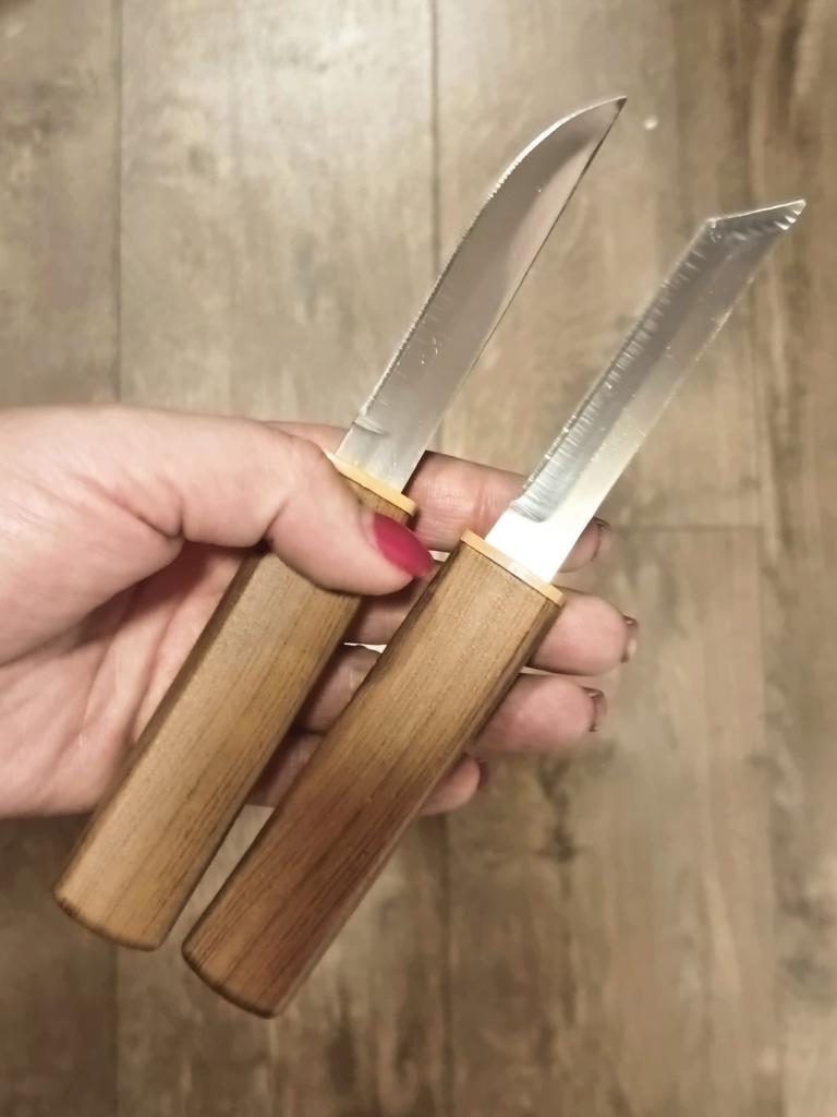 Sada dvou nožů🗡️, která je ideální na cesty, houbaření nebo piknik. Nože mají jedinečný design rukojeti, který umožňuje, aby do sebe těsně zapadly a nevypadly. Nože jsou malé - celková délka cca 19 cm, čepel každého cca 9 cm Materiál rukojeti je bambus.. Ostření obou nožů je odlišné, ocel drží ostří normálně, každopádně jsou ideální pro hotové výrobky. Doporučuji koupit sadu, pokud jste něco podobného sháněli a dva nože jsou vždy lepší než jeden, třeba kapesní) #likaste