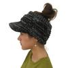 Beanie Tail Zimní teplý pletený Messy Vysoký drdol Čepice do culíku Kšilt Beanie Cap Outdoor Messy High Bun Cap Kruhové šátky