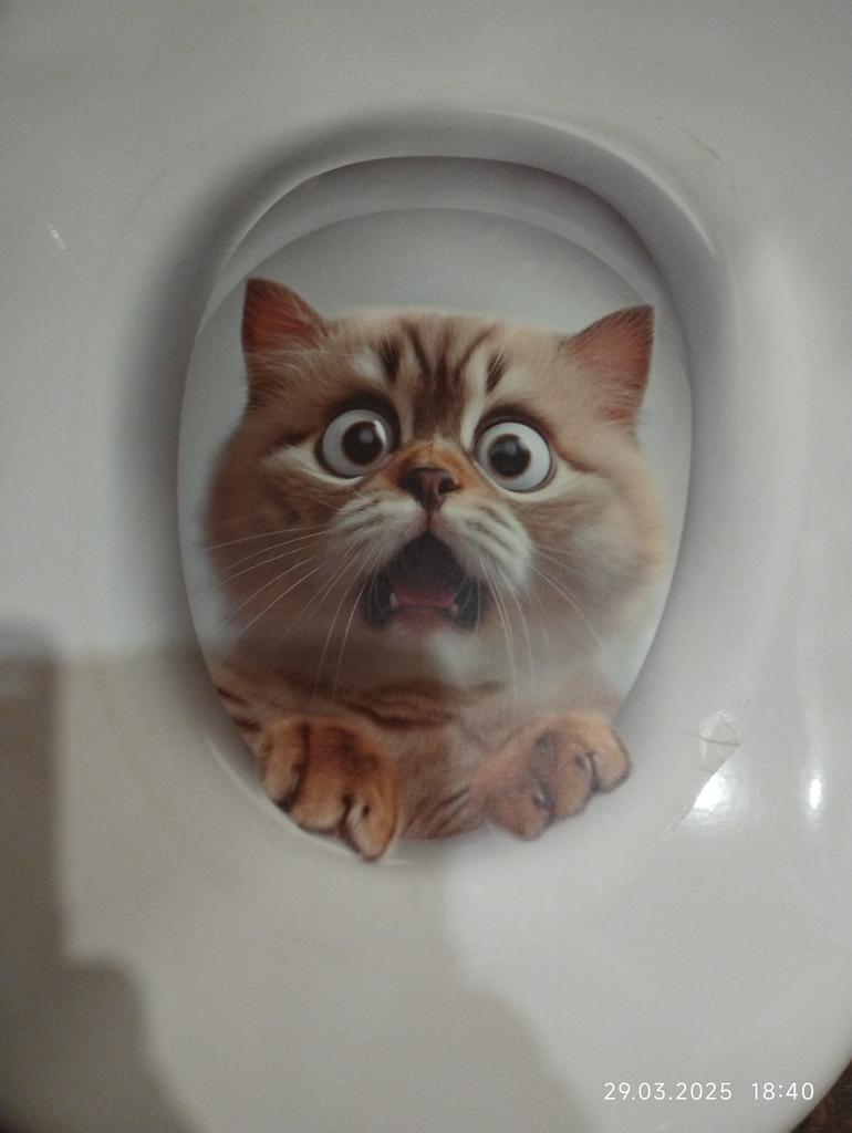 Cool nálepka na víko toalety. Vypadá okouzlující. Dobře se lepí, nespěchejte, abyste později nevytlačili vzduch z obrázku. doporučuji to.