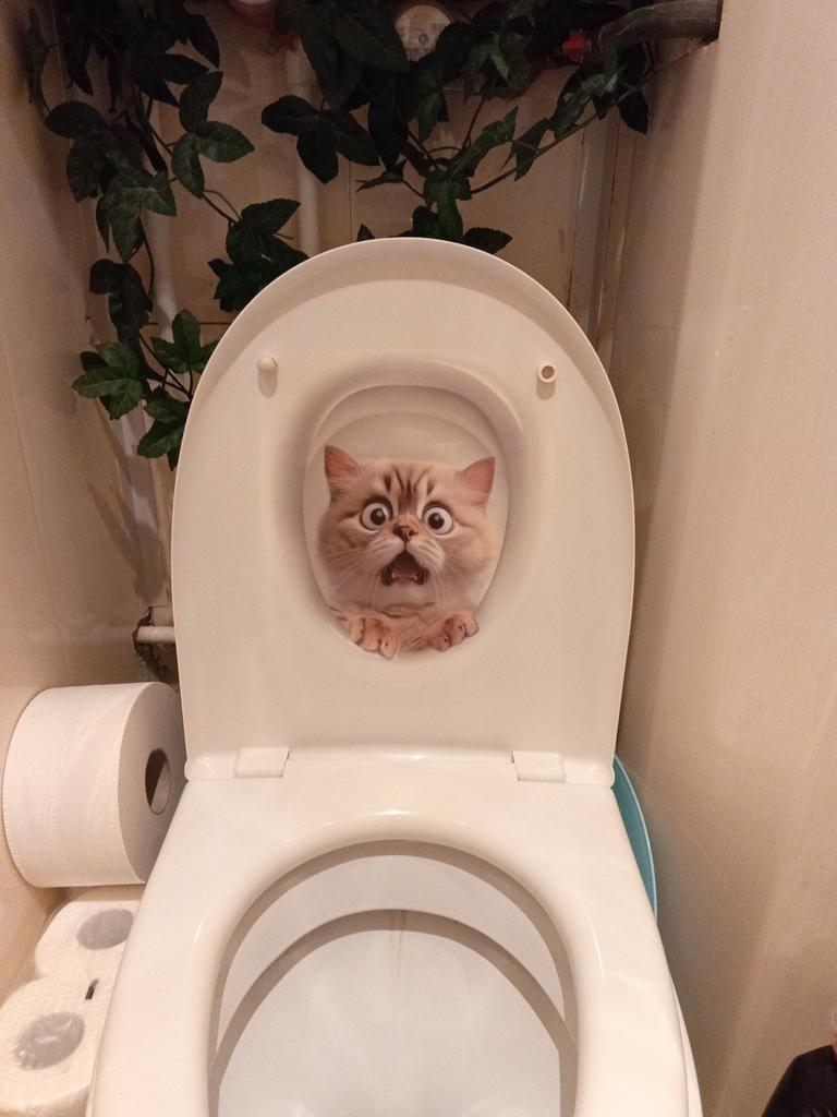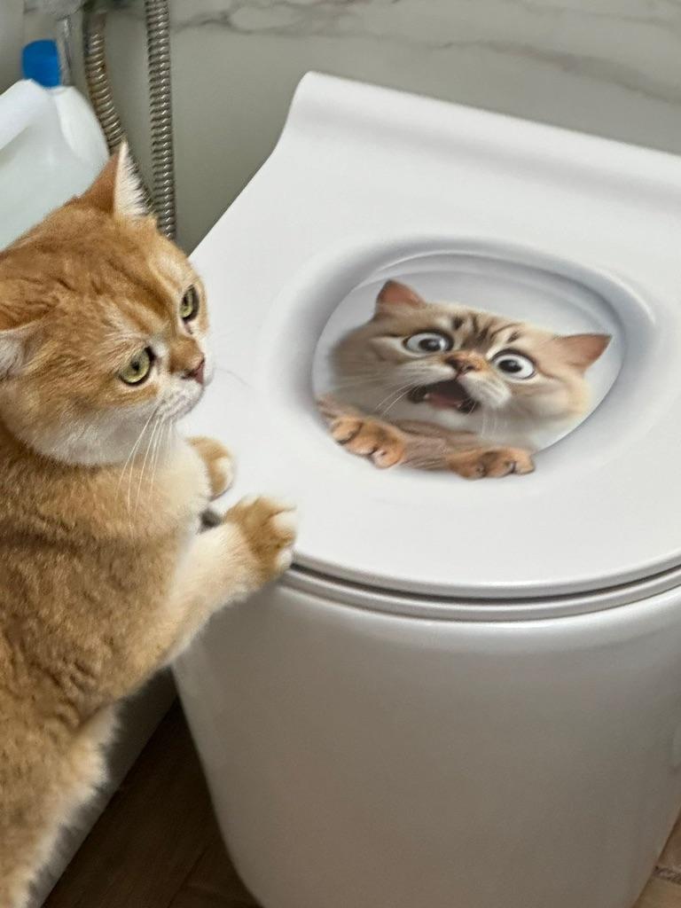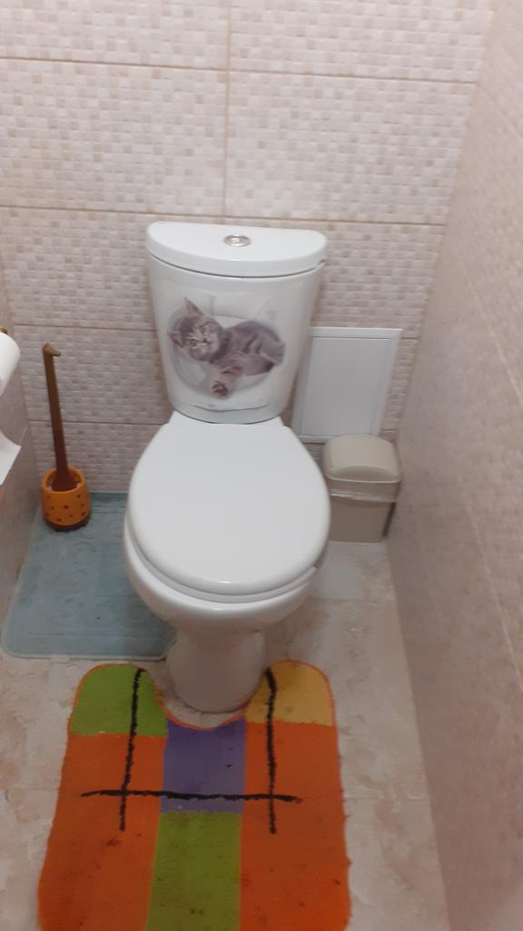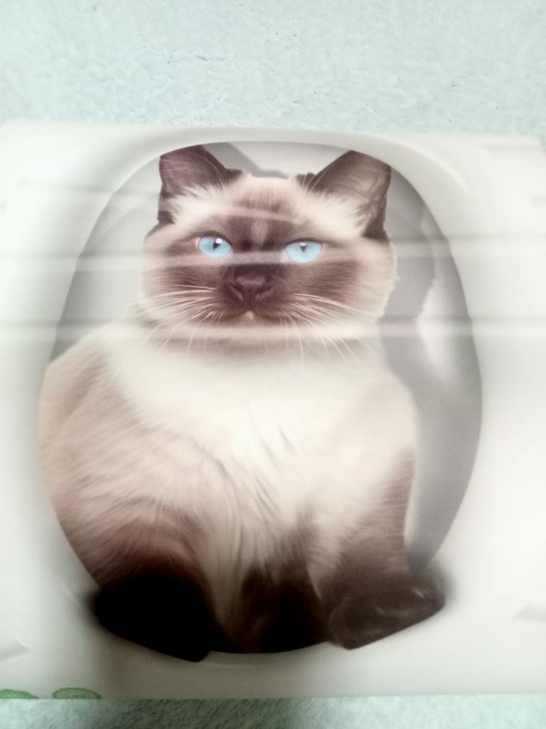Cool kočka, ale na bílém neutrálním podkladu by to vypadalo lépe, můj modrý záchod se k tomu nehodí