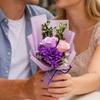 Tato simulační kytice je ideální jako dárek pro maminku ke Dni matek a je zdobena karafiátem, růží, mašlí a zelenými listy.