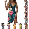 Letní šaty s květinovým potiskem a ohlávkou bez rukávů pro dámské mini oblečení