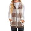 Dámský kostkovaný pohodlný fleece cardigan tílko stojící límec dámská vesta bez rukávů
