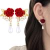 Nové módní květinové červené náušnice s komárem bez piercingu náušnice