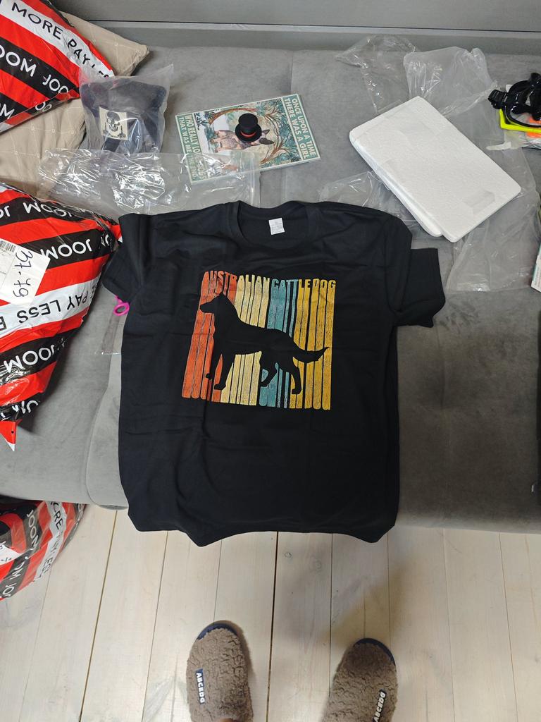 Tričko australského honáckého psa silueta popraskané Distressed Unisex ve stylu retro 1970