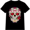 Cukrová lebka a růže Den mrtvých umění lebky Juniorské unisex tričko