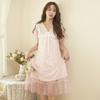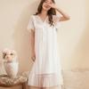 Síťované pyžamo Dámské s výstřihem do V Korejský Vintage Krajkový Elegantní Princezna noční košile s krátkým rukávem Domácí oblečení Midi šaty