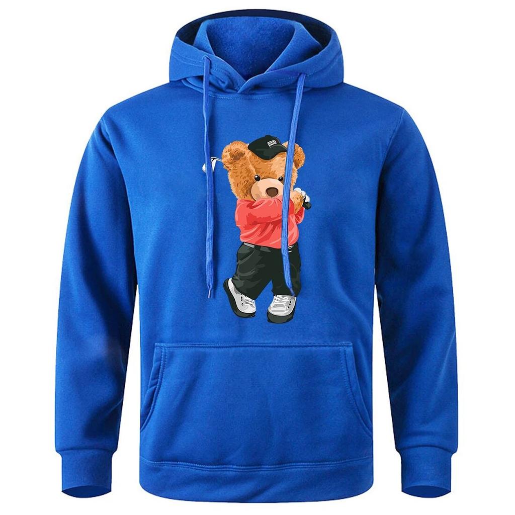 Strýček Teddy Bear hraje golf Potisk Unisex Mikina Velká volná Fleecová tepláková souprava Základní Běžné Sportovní Mikiny Klasické Kreativní Mikiny s kapucí