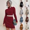 Women's Sweater Solid Color Long Knitted Dress Slimming Hip-hugging Turtleneck Sweater Dress Multi-color