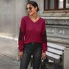 Podzimní dámský úpletový top Móda Jednobarevný úplet spodní díl s dlouhým rukávem