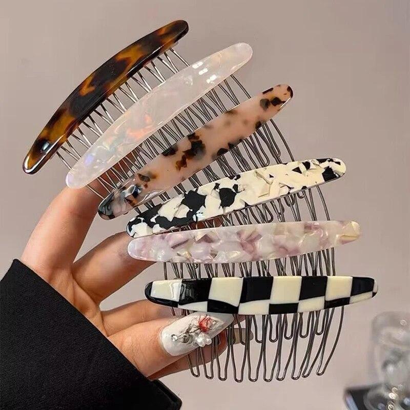 Exquisite Acetate Print Checkered Hair Comb Hairpin Vintage Side Hair Clip Hairgrip Fashion Hair Accessories For Women Headdress