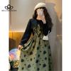 Francouzský styl Jemný styl jaro podzim nové šaty Vintage design Sense Slip šaty Elegantní kardiganový oblek se sponou
