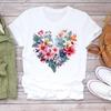 (Asijská velikost) Ženy milují srdce Květinový trend 90. léta Krátký rukáv Módní potisk Dámské tričko Top Oblečení Ležérní Tričko Dámská grafická trička