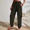 Jarní a letní dámská móda Elastická páska Univerzální jednobarevné kapsové ležérní overaly Dámské kalhoty