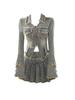Korejská móda 2024 Y2k Denim 2dílná sada Dámské Topy na zip s dlouhým rukávem + mini plisované sukně Dámské retro kapsy Design Ležérní obleky do ulice
