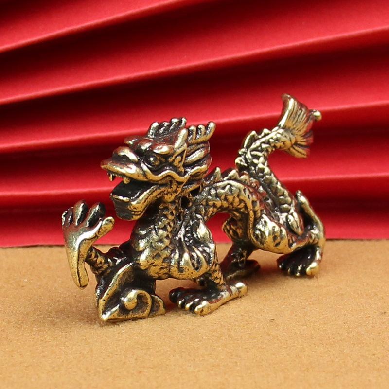 Vintage Ornament Retro Zodiac Dragon Socha Mosazný Dekor Prosperita Čínský styl Dragon Luck