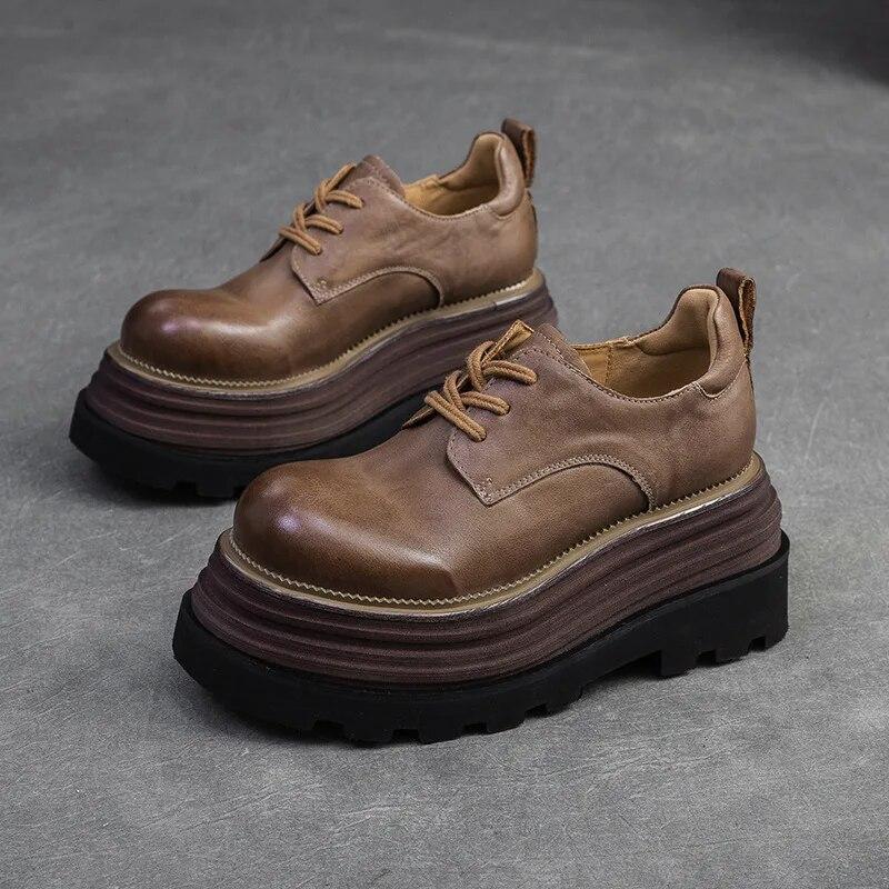 Johnature Retro zvýšená tlustá podrážka plochá platforma boty s kulatou špičkou šněrování univerzální módní dámská obuv