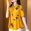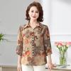 Dámská nová zeštíhlující a stylová košile s potiskem a límcem, top s plisovaným designem pro maminky, který omlazuje.