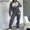BITCED Spring and Autumn Fashion Casual Hoodie Two-piece Long-sleeved Solid Color Fleece Feet Leisure Suit