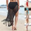 Dámská plážová sukně s vysokým pasem pletená s dlouhým střapcem, vyhloubeným, průhledným, podélným, jednobarevným rozdělením na podlahu