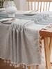 Černošedé ubrusy, látkové pruhované ubrusy s pruhovanými střapci, dekorace kuchyňského stolu