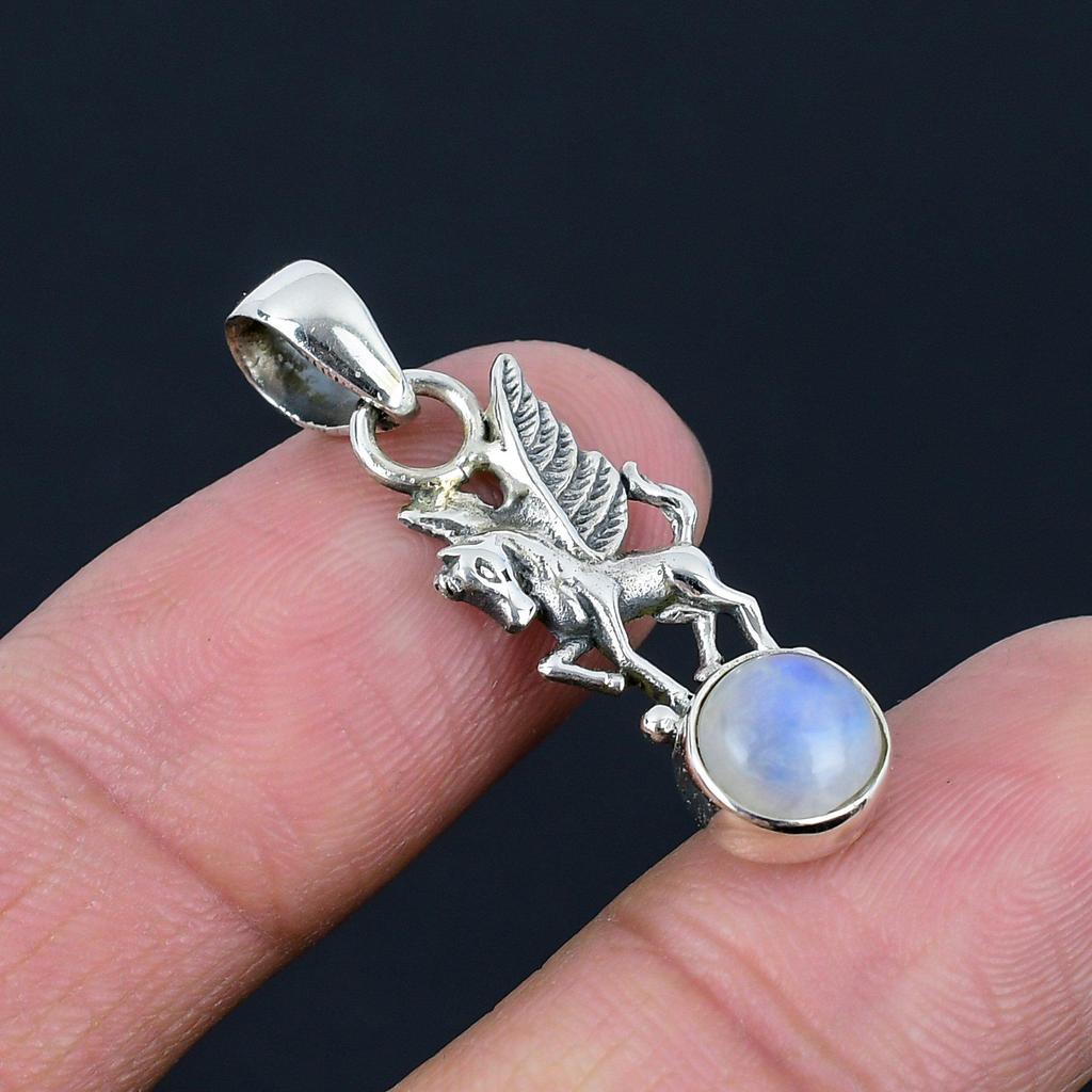 Přívěsek z přírodního duhového měsíčního kamene, stříbro 925, ručně vyrobený přívěsek s jednorožcem a koněm, dárek k Valentýnu