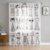 Roztomilé kreslené ručně kreslené kočičí tylové závěsy do obývacího pokoje Výzdoba ložnice Šifon Průsvitný voál Kuchyňský závěs na okno