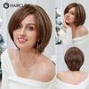 Krátké hnědé smíšené blond paruky ze směsi lidských vlasů Bob rovné paruky s ofinou Lidské vlasy tepelně odolné pro ženy
