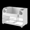 - 【Otevírací design】 Stolní úložný stojan, zásuvka umožňuje snadný přístup k nezbytnostem, skladování a organizaci make-upu, kosmetiky, tužky na pera, kancelářských potřeb, malých toaletních potřeb a dalších drobností.
