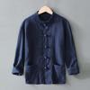 Pánská jarní a podzimní retro košile s dlouhým rukávem, stojáček, ležérní košile, volná bavlněná košile