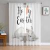Easter Bunny Flower Butterfly Watercolor Rabbit Tulle Curtains for Living Room Kitchen Sheer Voile Curtain Bedroom Window Panels