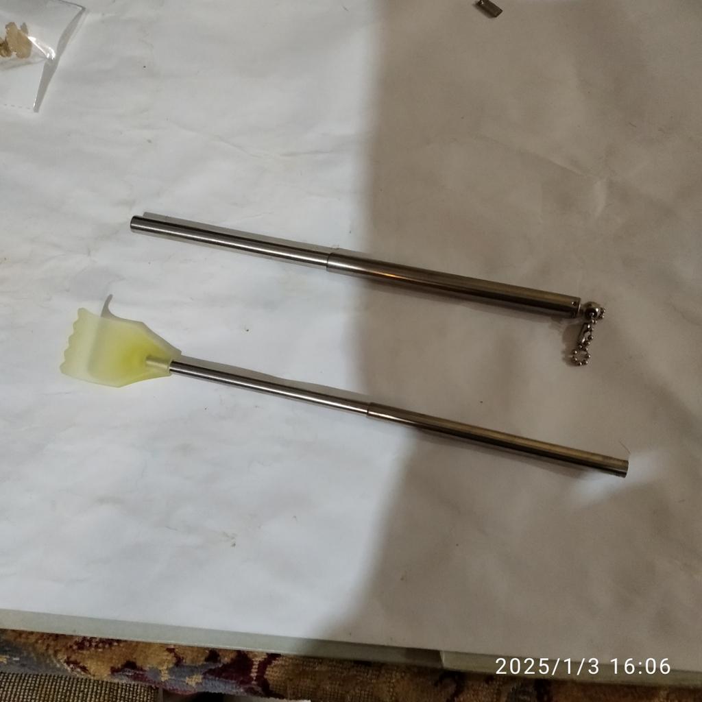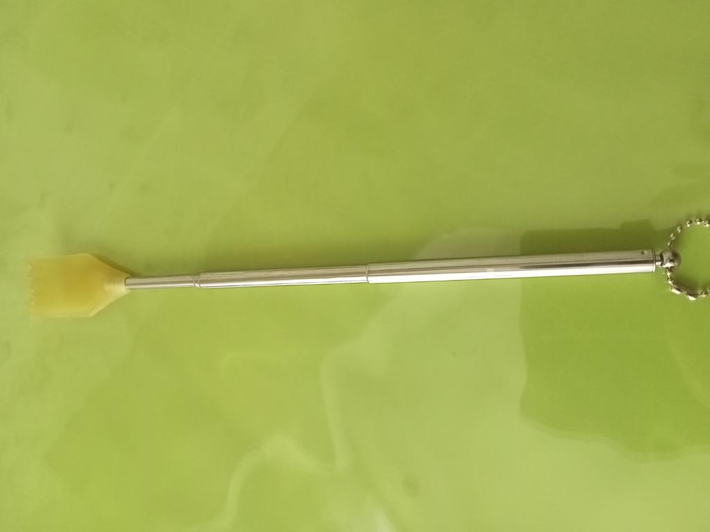 Pohodlné teleskopické drbátko. Kromě drbání mě ještě slouží k posouvání závěsů nebo k vytažení drobností zpod skříně, například...