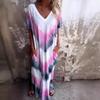 Dámské léto s krátkým rukávem, výstřihem do V, kravatou s barevným dělením, nepravidelné šaty