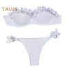 Top má ocelovou podporu a prsní vycpávky pro větší pohodlí a tvarování, zatímco plavky mají elastický pas a okouzlující trojrozměrné krajkové zdobení.. Tento set lze snadno spárovat s kotníky, řetízky v pase nebo halenkou pro elegantní plážový vzhled, který zaujme, ať už půjdete kamkoli.