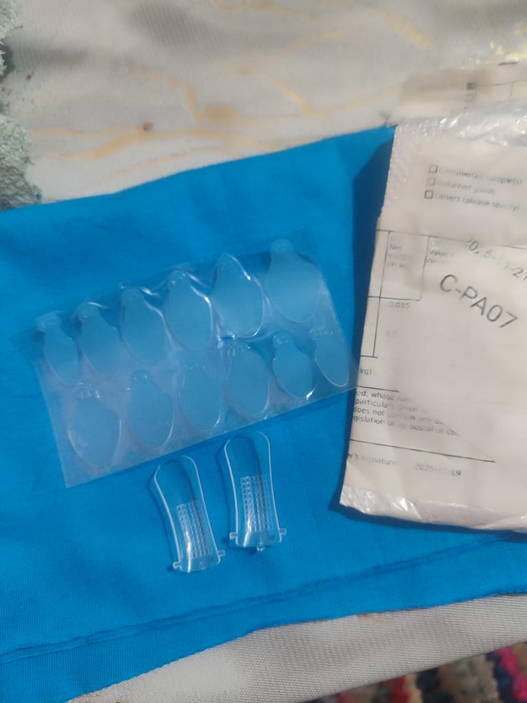Balení a kvalita produktu jsou vynikající, ale velikost je velká. Na nehty mi pasují jen ty dva nejmenší, i když se dají zastřihnout.